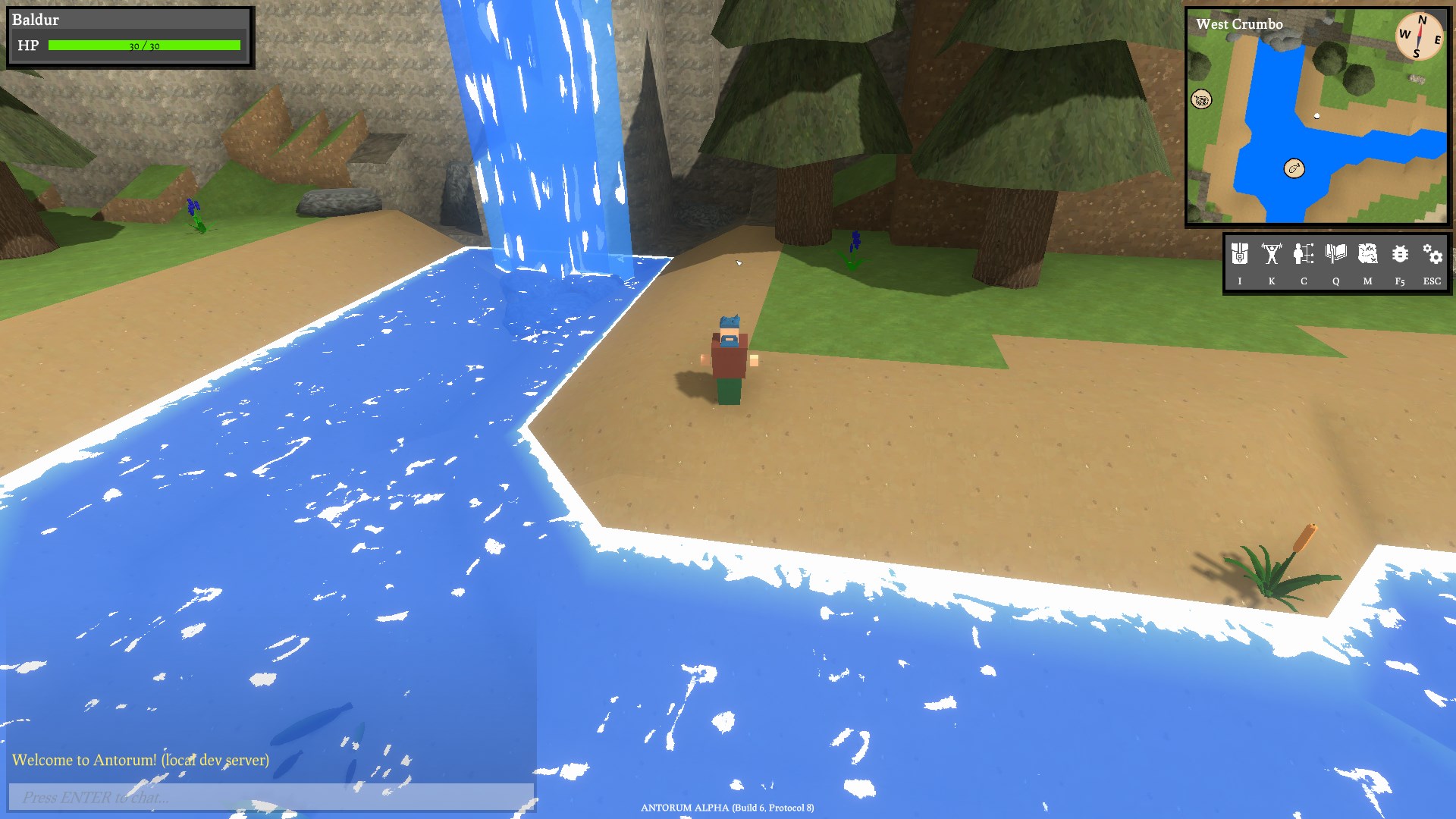 A random fun thing I did recently was add a waterfall to the map! There's actually two, if you know where to look. It needs particle effects but it's nice to see some water in the game that isn't just endless ocean. I've also been tinkering on new quests, but that's been a slow process due to the amount of writing required.