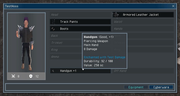 Individual item instances already had support for properties, but stats are a bit different. They change often, don't need to be persisted to the database, and are derived from said properties (like quality, durability, and enchantments). To achieve this, each item instance can now have a block of stats associated with it that gets calculated by the server and synced to clients when needed. Instead of just using the static base stats from the item definition, the stats of each item instance are derived when the item is created in the game world or when the item is modified (e.g. if the quality or durability is changed). This was a big refactor, but it was necessary to support the new item quality system and a few other things I have in mind for the future.